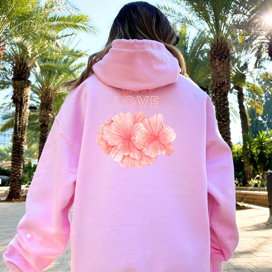 Summer Love Hibiscus Flower Coastal Hooded Sweatshirt